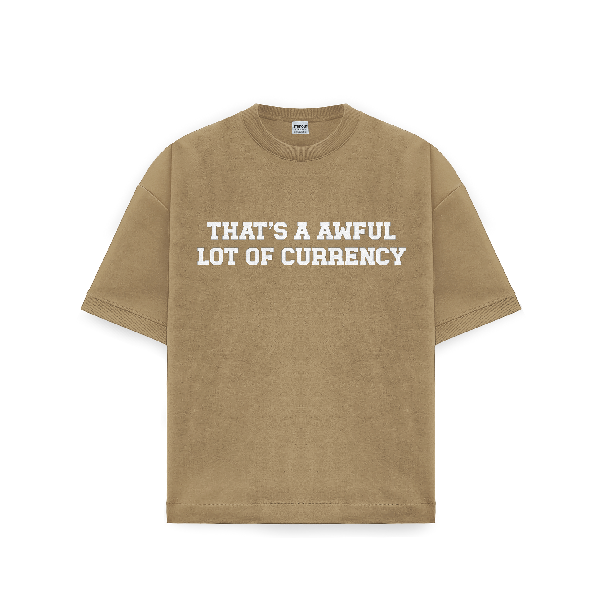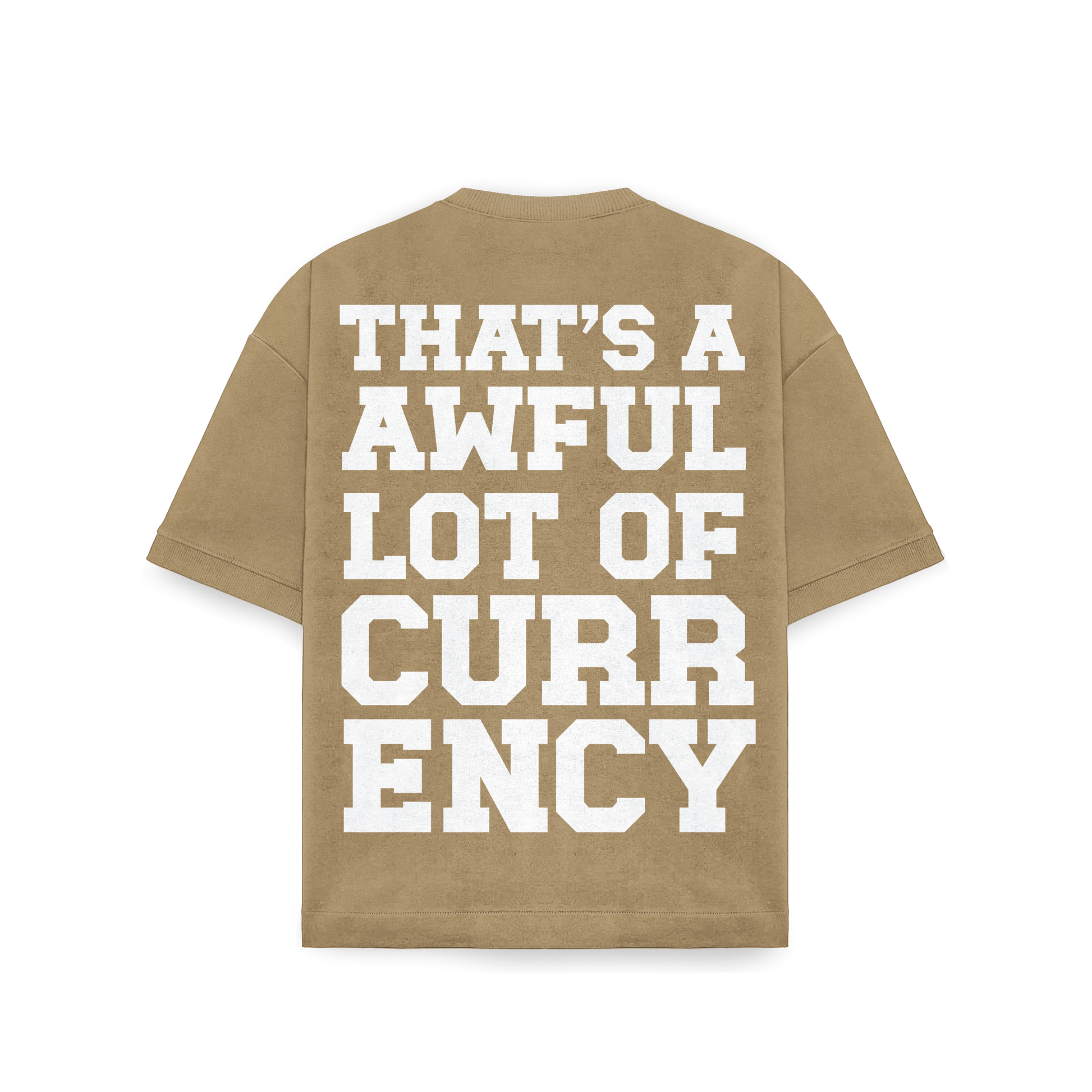 Put your money where your mouth is with our "That's A Awful Lot of Currency" tee. Premium cotton, this oversized t-shirt provides effortless comfort. Crisp white logo on the front and the back, it brings high-impact visual energy.
